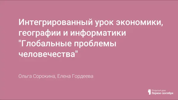 Интегрированный урок по теме "Глобальные проблемы человечества" в 11-м классе информационно-технологического профиля. Урок проводится в форме семинара-заседания комиссии ООН. При подготовке урока учащиеся создают компьютерные презентации по основным глобальным проблемам человечества. На уроке учащиеся знакомятся с глобальными проблемами человечества, осознают их опасность и предлагают пути их решения.