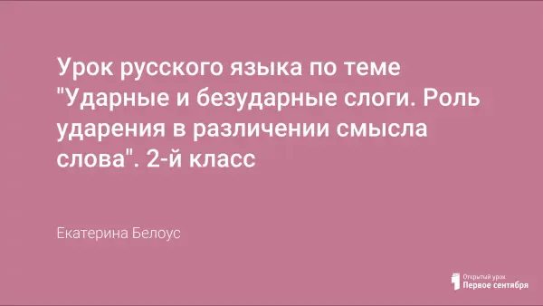 Открытый урок изучения нового материала с презентацией по учебнику А.В. Поляковой (УМК «Система Л.В. Занкова»). Цель урока: уточнить и систематизировать знания учащихся об ударении, сформировать представление о смыслоразличительной роли ударения в словах.