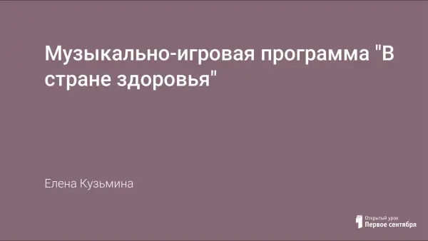 Отсутствие личных приоритетов здоровья способствует распространению в детской среде различных форм саморазрушающего поведения. Цель данной музыкально-игровой программы "В стране Здоровья" – формирование здоровых установок и навыков ответственного поведения, снижающих вероятность приобщения к вредным привычкам (употребление табака, алкоголя). Данная программа учит школьников правильному поведению в провоцирующей ситуации, показывает им способы, которыми можно преодолевать внешнее наркогенное давление.