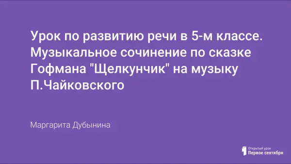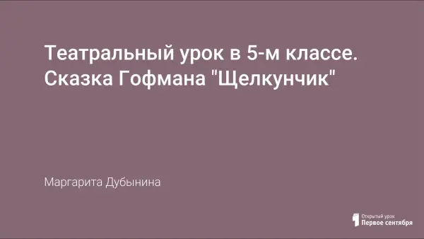 Театральный урок по сказке Э.Гофмана "Щелкунчик и Мышиный король". На уроке звучала музыка П.Чайковского к балету "Щелкунчик". Возникла идея написать музыкальное сочинение, в котором ребята попытались ответить на вопросы: В каких сценах художественное слово соединилось с музыкой, гармонично совпадало с ней? Какие музыкальные темы появились?