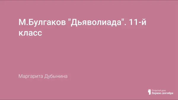 Литературный вечер, посвященный личности и творчеству М.Булгакова. Цель мероприятия: вовлечь учащихся в процесс чтения как интереснейший процесс интеллектуальной работы; развивать фантазию; обучать работе с текстом отбору текстового материала и его анализу, обучать сопоставительному анализу художественного произведения, театрального спектакля, киноверсии.
