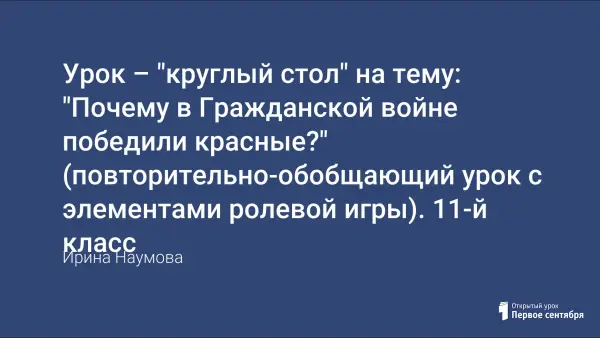 Проблемный урок в форме "круглого стола" позволяет активизировать мыслительную деятельность учащихся на уроке. Решая проблему, учащиеся должны подбирать факты, использовать исторические источники, давать оценку историческим событиям и деятельности исторических личностей, определять причинно-следственные связи между процессами и явлениями, чтобы ответить на поставленный вопрос. В ходе дискуссии они учатся выслушивать и уважать мнение другого человека, доказывать и отстаивать свою точку зрения. Использование разноуровневых заданий при проверке знаний, самооценке уровня своей активности на уроке требует от учащихся реальной, объективной оценки уровня их подготовленности по изученной теме. Элементы ролевой игры, использование наглядности, литературных и музыкальных произведений по теме способствуют тому, чтобы учащиеся почувствовали атмосферу того времени, прониклись ей. Всё это направлено на развитие интереса к событиям отечественной истории, воспитание любви и уважения к нелегкой судьбе своей Родины.