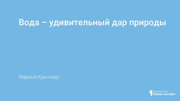 Цель урока: обобщить полученные знания на уроках биологии, химии, физики и географии по теме «Вода»; активизировать и закрепить знания учащихся; способствовать развитию познавательного интереса; формировать навыки сотрудничества, коллективного взаимодействия.