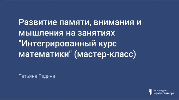 В материалах мастер-класса "Развитие памяти, внимания и мышления на занятиях "Интегрированный курс математики" можно познакомиться с программой курса, с основными приемами формирования мыслительных операций на уроках математики.