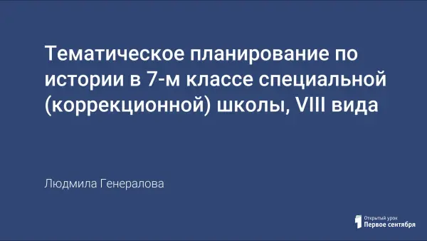 Представленный учебно-тематический план определяет содержание, объем, порядок изучения истории в коррекционной общеобразовательной школе с учетом целей, задач и особенностей контингента обучающихся. В нем определены основные знания, умения и навыки, которыми должны овладеть учащиеся в процессе изучения истории.