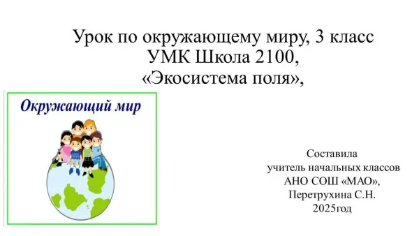 Цель урока: ознакомление с экосистемой поля, его растениями, животными и ролью человека в этой экосистеме.