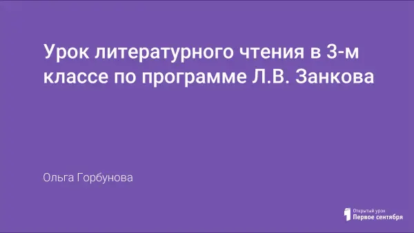 Вариант урока, построенный по развивающей программе Л.В. Занкова (автор учебника Н.А. Чуракова, 3 класс). Дети включаются в творческую, проблемную речевую деятельность на весь урок. В процессе работы они не только знакомятся с произведением, но и узнают об особенном литературном языке автора, его отношении к миру. Дети сами учатся с помощью языковых средств создавать образы, овладевают выразительностью речи через передачу чувств, которые возникают при чтении.