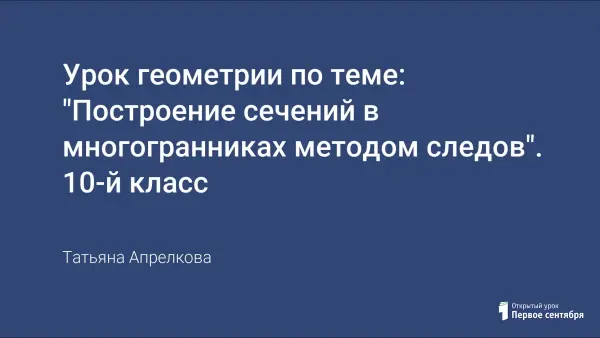 Представленный урок геометрии в 10-м классе формирует у учащихся навыки построения сечений методом следов, развивает пространственное воображение.