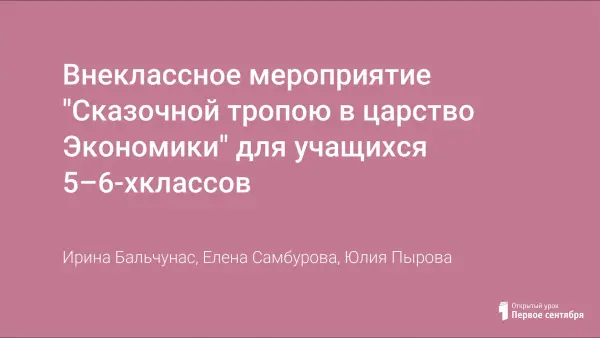 Внеклассное мероприятие "Сказочной тропою в царство Экономики" для учащихся 5–6-хклассов
