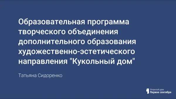 Образовательная программа творческого объединения дополнительного образования художественно-эстетического направления "Кукольный дом"