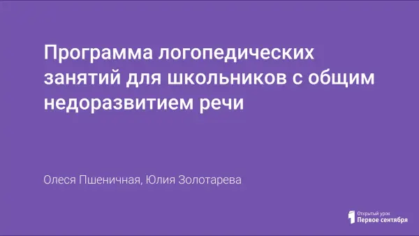 Программа логопедических занятий для школьников с общим недоразвитием речи
