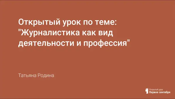Данный урок разработан для учащихся 10-х классов, занимающихся на элективном курсе "Основы журналистики". Цель урока: познакомить учащихся с основными специальностями сферы журналистики, с основными функциями журналистики. Особое внимание на уроке обращается на профессионально важные качества, необходимые людям, занимающимся данной профессиональной деятельностью.