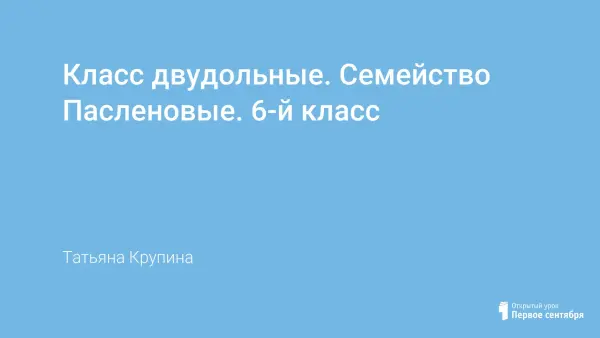 Цель урока: познакомить учащихся с отличительными признаками растений семейства Паслёновых, с их многообразием, показать их роль в природе и значение в жизни человека, продолжить формирование умения составлять морфологическое описание растения, определять их по внешнему строению.
