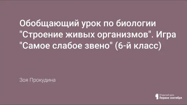 Урок проходит в форме игры. Осуществляется проверка знаний, умений, навыков учащихся о строении живых организмов, об охране природы, совершенствуются знания о строении и функциях клетки.