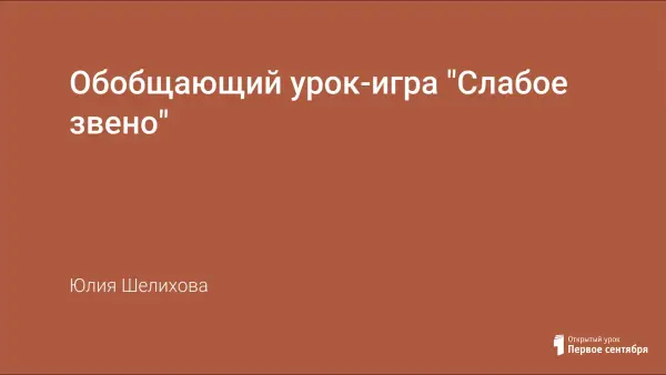 Сценарий – аналог телевизионной игры "Слабое звено". Основная цель – повышение интереса к предмету. Данный урок проводится в конце IV четверти 9-го класса для повторения и обобщения знаний, полученных при изучении базового курса.