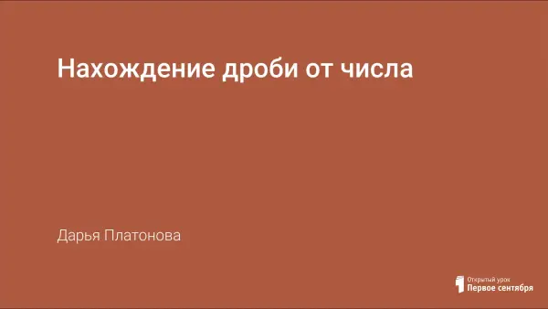 Вводится понятие дроби от числа, формулируется правило нахождения дроби от числа, учащиеся познакомятся с задачами на нахождение дроби от числа; развиваются навыки решения задач и упражнений по данной теме.