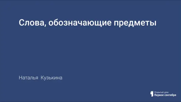 Цель урока: создание условий для формирования представления о словах, обозначающих предметы и их лексическом значении; формирование у учащихся умения распознавать слова, обозначающие предметы, аргументировать свой выбор.