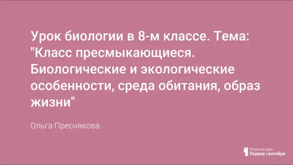 Данный урок проводится с использованием информационных технологий (изучение материала сопровождается презентацией). Учащиеся готовят сообщения о представителях отряда чешуйчатые (змеи, ящерицы), а также о вымерших представителях данного класса. На занятии используется самостоятельная работа с рисунками учебника, фронтальная беседа, индивидуальное тестирование. Учащиеся получают навыки заполнения таблицы, учатся работать с тестовыми заданиями.
