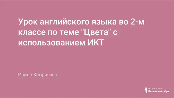 Учитывая возрастные психологические особенности детей младшего школьного возраста, а именно то, что все новое, неожиданное, яркое привлекает внимание учеников и способствует более прочному запоминанию учебного материала, представлен урок с использованием мультимедийной презентации. По типу — это урок усвоения новых знаний. Дети знакомятся с названиями цветов. Использование звуковых эффектов в сочетании со зрительными позволяют учащимся получить более полные и глубокие знания.