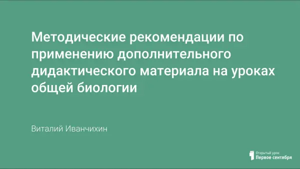 Разработана серия дидактических заданий, которые дополняют основной материал курсов биологии 9–11-х классов. Дидактические задания разработаны для организации самостоятельной работы учащихся на уроке и на серии уроков, могут служить основой для профессионального ориентирования.
