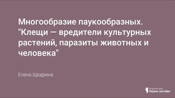 Урок "Многообразие паукообразных. Клещи — их роль в природе и жизни человека" из этого цикла.