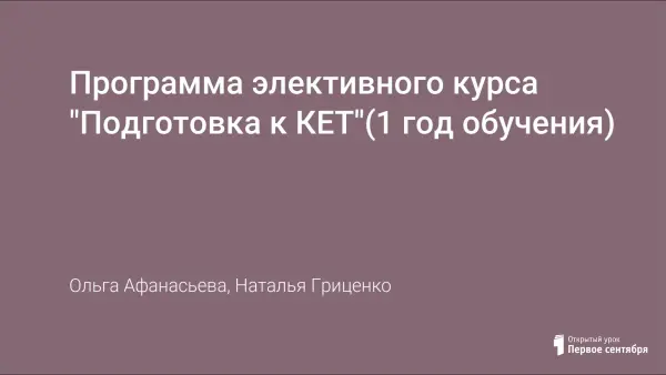Программа элективного курса "Подготовка к КЕТ"(1 год обучения)