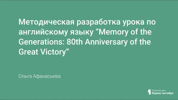 Методическая разработка урока по английскому языку “Memory of the Generations: 80th Anniversary of the Great Victory”
