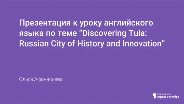 Презентация к уроку английского языка по теме “Discovering Tula: Russian City of History and Innovation”