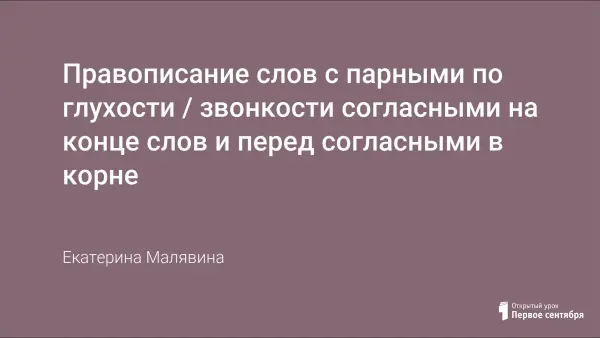 Урок проводился в 3-м классе по УМК «Школа России» по учебнику В.П.Канакиной. Урок закрепления правописания слов с парными по глухости / звонкости согласными на конце слов и перед согласными в корне. Задачи урока: учить находить в словах орфограммы, развивать умение обозначать буквой парный по глухости / звонкости согласный звук, обобщить знания о способах подбора проверочных слов.