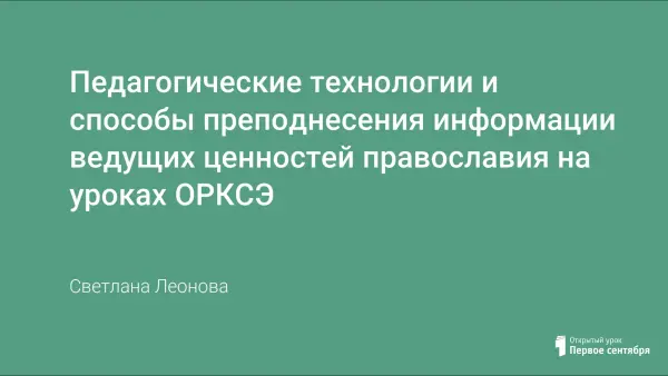 Непреходящие ценности православия ‒ Бог, добро, человек, труд, семья, родина. Автор придает большое значение миру семьи, она формирует нравственное, духовное здоровье ребенка. Автор излагает, какие педагогические технологии и способы преподнесения информации ведущих ценностей православия будут использоваться на уроках ОРКСЭ по теме "Семья".