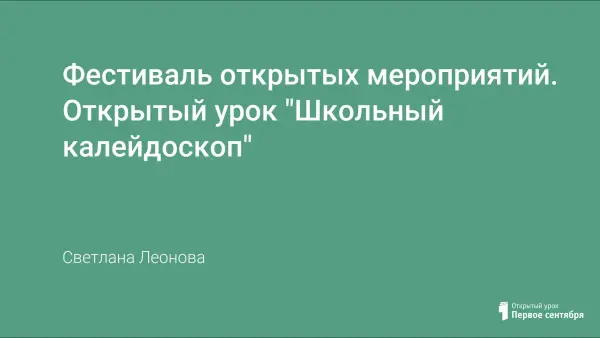 Автор делится опытом проведения ежегодного фестиваля открытых мероприятий. В течение недели, согласно графику, родители, коллеги, педагоги других школ могут посетить любое мероприятие фестиваля. «Школьный калейдоскоп» – урок, на котором один школьный предмет сменяется другим.