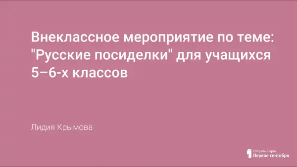"Русские посиделки" – это внеклассное мероприятие, которое можно провести как в рамках Недели истории, так и в качестве самостоятельного праздника. Оно способствует пробуждению у учащихся интереса к прошлому нашей страны, приобщает к культурному наследию народа, формирует бережное отношение к народным обычаям и традициям. В процесс подготовки и проведения данного мероприятия вовлечены все учащиеся класса, что способствует сплочению классного коллектива.