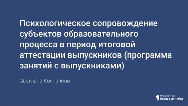 Представленный материал является частью программы по психологическому сопровождению выпускников в период подготовки к экзаменам. Это занятие может проводиться и самостоятельно – классный час, внеклассное мероприятие и т.д. Основное содержание занятия направлено на получение определенного опыта учащимися. Акцент делается на усвоение собственного способа деятельности.