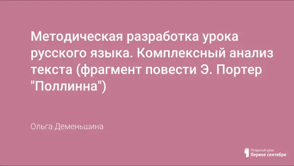 В начале учебного года в 6 классе для повторения изученного материала на уроках русского языка предлагаю использовать эпизоды из повести Элинор Портер "Поллианна". Это удивительное произведение американской писательницы о маленькой девочке, оставшейся сиротой, живущей у весьма строгой тётушки Полли.