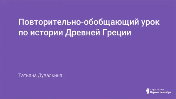 Урок обобщает и систематизирует знания учащихся по истории Древней Греции, позволяет сформировать более глубокое представление о древнегреческом полисе, его ценностях и огромном вкладе эллинов в развитие мировой культуры. Очень важно, чтобы у детей сформировалось представление об общности культуры античности и современного мира. Подвести детей к понятию "общечеловеческие ценности", так как ученики подобные проблемы вне урока практически не обсуждают. На уроке отрабатываются умения и навыки отвечать кратко и содержательно, работать с картой.