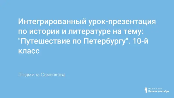 Интегрированный урок-презентация по истории и литературе в 10-м классе по теме "Путешествие по Петербургу". Использование компьютера позволяет увеличить интенсивность подачи материала, сообщить больше сведений по изученной теме за меньший промежуток времени и представить материал в более наглядной и доходчивой форме. Данная презентация позволяет ученику проверить свои ответы прямо на экране компьютера.
