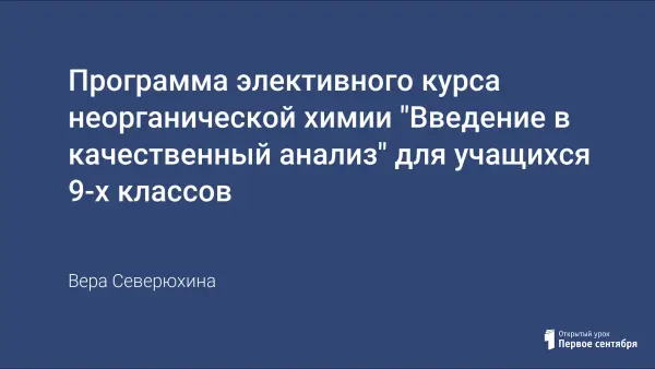 Программа элективного курса способствует расширению знаний учащихся о химии как науке. Содержание позволяет развивать идеи базового курса химии основной школы и концентрируется вокруг трех блоков знаний: о веществе, о химической реакции и методах научного эксперимента.