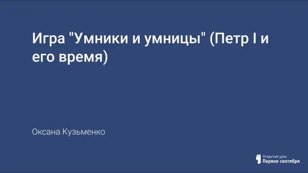 Игра проводится по типу телеигры "Умники и умницы" и рассчитана на учащихся 7–10-х классов. Игра разработана в качестве внеклассного мероприятия в рамках Декады общественных наук, но вполне применима и на уроке при наличии достаточного времени. Цели игры: способствовать расширению исторической эрудиции учащихся, развитию интереса к предмету; способствовать развитию логического мышления и речи учащихся; способствовать формированию чувства гордости за историю России.