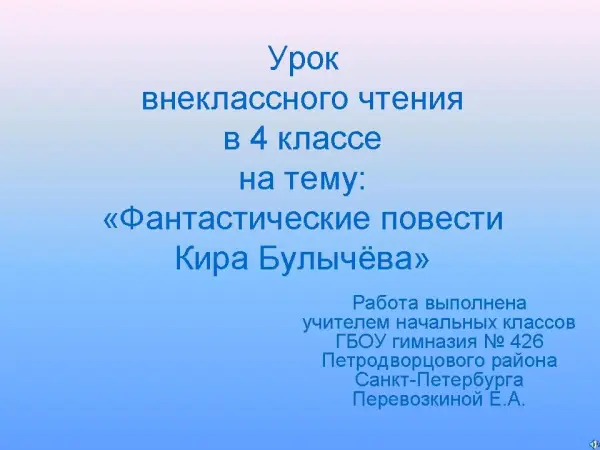 Развитие читательской культуры по фантастической повести К.Булычева "Девочка, с которой ничего не случится"