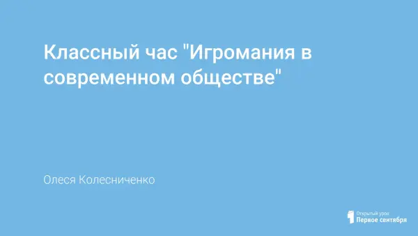 Классный час по проблеме игромании в современном обществе разработан для учащихся старших классов. Мероприятие разработано в форме пресс-конференции. Целями классного часа являются: подведение учащихся к осознанию существующей программы; развитие их творческого потенциала; воспитание положительных нравственных качеств у подрастающего поколения.