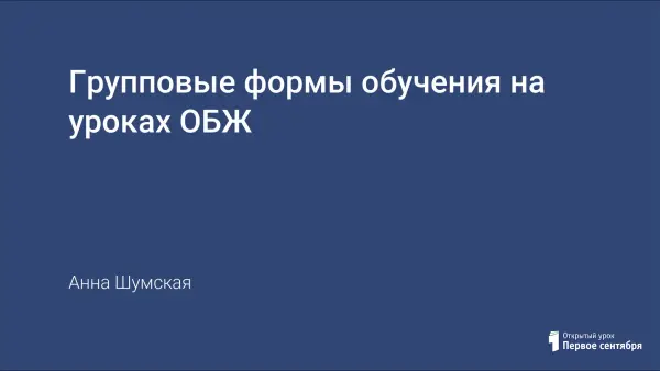 Одной из интересных форм организации совместной продуктивной деятельности на уроке ОБЖ может быть групповая форма обучения учащихся. В условиях существующей в нашей школе классно-урочной системы эта форма легко вписывается в учебный процесс и не затрагивает содержание курса ОБЖ, определенное образовательным стандартом. Групповая форма обучения безопасной жизнедеятельности – согласованная деятельность учителя и учеников, направленная на развитие самостоятельности, активности, инициативы каждого ученика при решении вопросов личной безопасности и безопасности окружающих.