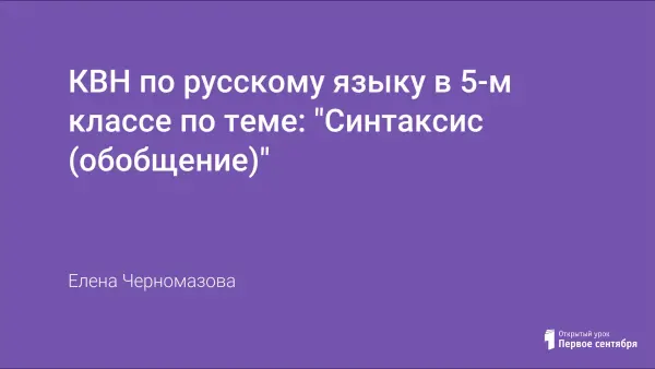 Урок-обобщение по русскому языку в 5-м классе проводится в форме игры КВН, тем самым закрепляя знания о синтаксисе и прививая детям любовь к русскому языку, а также развивая чувство коллективизма и умение работать в команде.