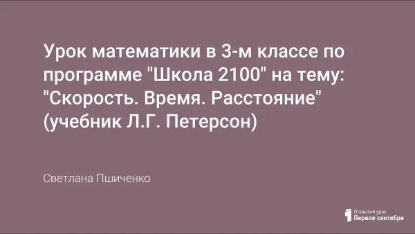 Урок в 3-м классе по программе "Школа-2100", на котором через создание проблемной ситуации происходит знакомство с понятием "скорость" и единицами ее измерения, с взаимосвязью скорости со временем и расстоянием.