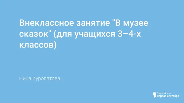 Внеклассное занятие "В музее сказок" (для учащихся 3–4-х классов)