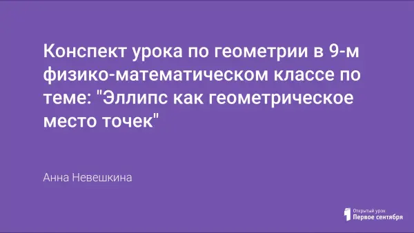 Целью данного урока является рассмотрение эллипса с точки зрения геометрии как ГМТ,
