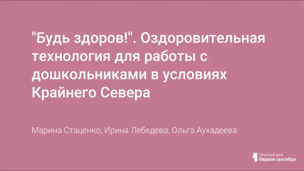 "Будь здоров!". Оздоровительная технология для работы с дошкольниками в условиях Крайнего Севера