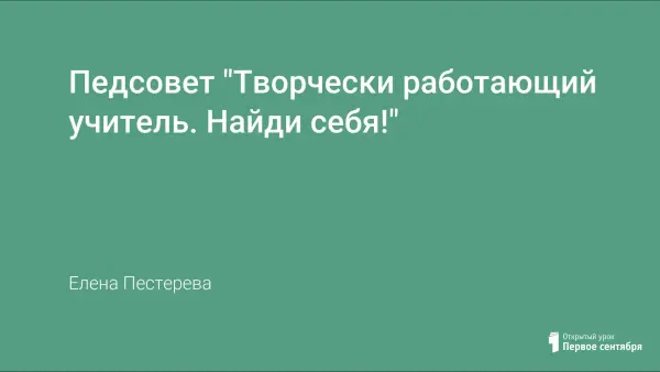 Данный педсовет личностно-ориентированного характера. Позволяет задуматься, "найти себя", сделать для себя какие-либо выводы, не сиюминутные и не поспешные. Главное, чтобы появилась потребность "строить себя, создавать себя", на "все сто" реализовать себя.