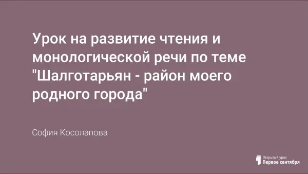 Урок немецкого языка в 7-м классе был проведён в рамках семинара завучей школ города Кемерово. В уроке использованы стратегии и приёмы развития навыков чтения и монологической речи при подготовке к защите проекта по тезаурусу по теме "Шалготарьян - район моего родного города".
