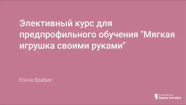 с некоторыми приёмами скорняжной работы. Элективный курс "Игрушки своими