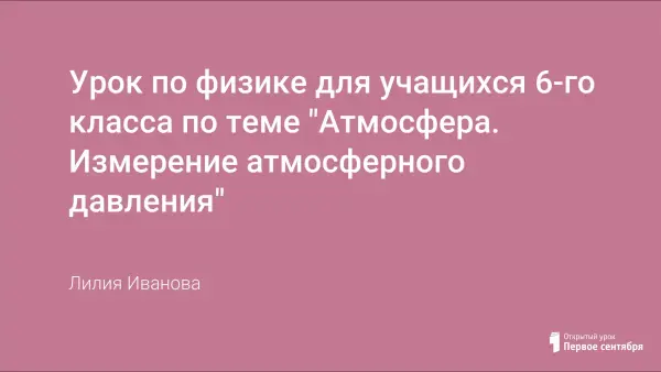 Урок проводится в 6-м классе естественно-научного профиля. Он продолжает изучение темы "Атмосфера. Измерение атмосферного давления". Основное назначение урока заключается в систематизации и закреплении знаний по изучаемой теме, создании условий для проведения эксперимента и возможностей для максимального развития каждого ученика, увеличения доли ответственности за порученное дело. Подобраны разнообразные задания, способствующие качественному усвоению материала.